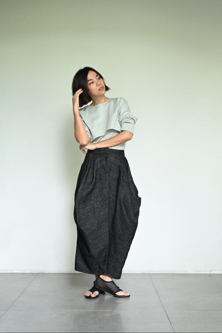 The new Degas Pullover is a structural two-piece top that frames the body, available in Charcoal and Mist. The Kakoi Skirt is made from denim, and comes in Slate and Ash Brown in a relaxed yet architectural piece that moves with you. Together, they strike a modern balance of form and flow that's unapologetically bold.