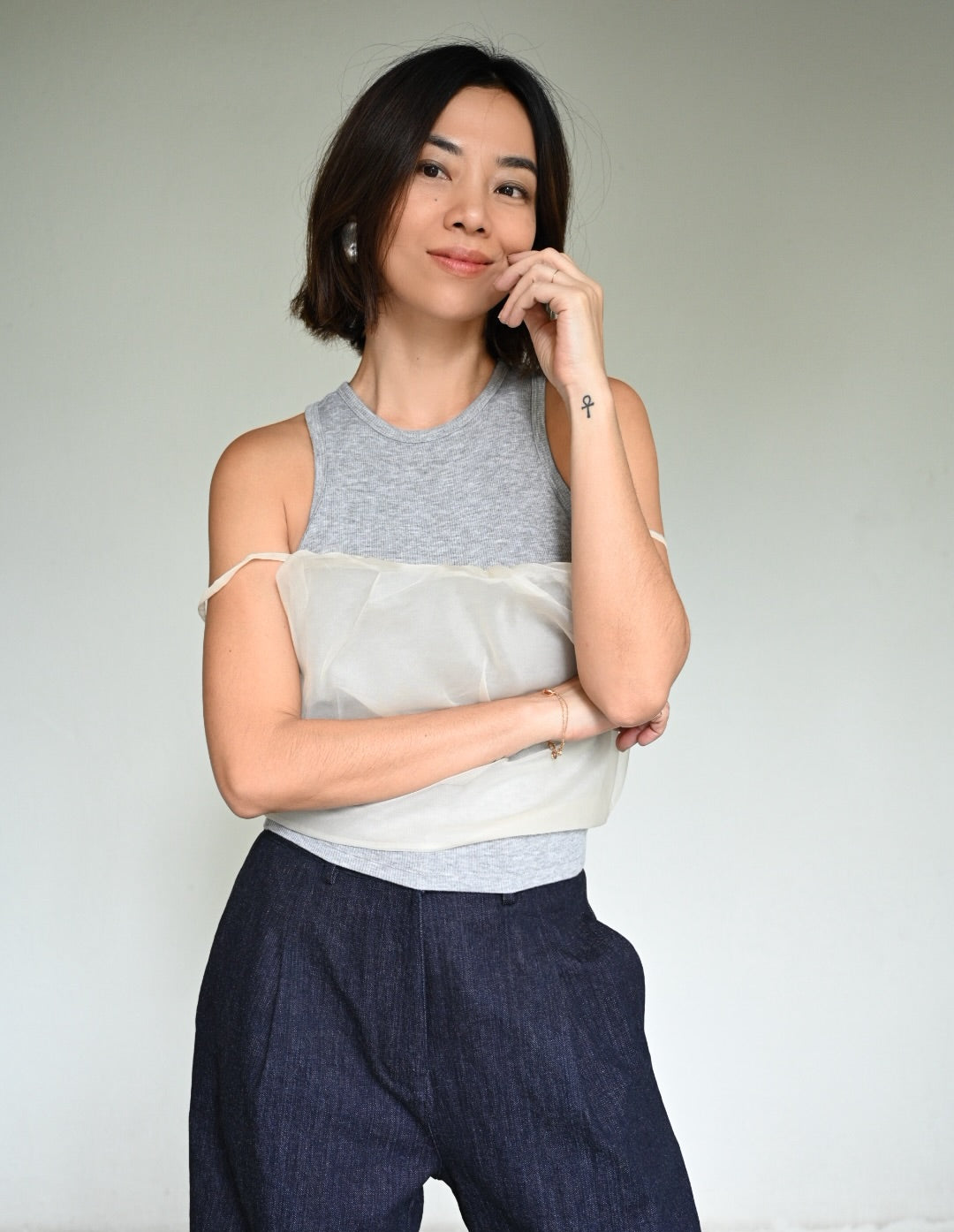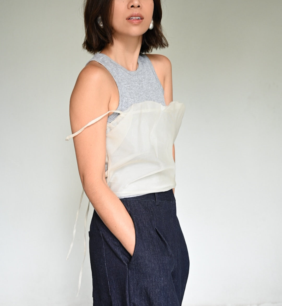 The Shell Topper is a light organza layer designed to add soft texture and a hint of everyday luxe to your look. Sheer, airy, and effortless, it slips over your basics to create subtle dimension while keeping everything clean and Unif0rm-chic.